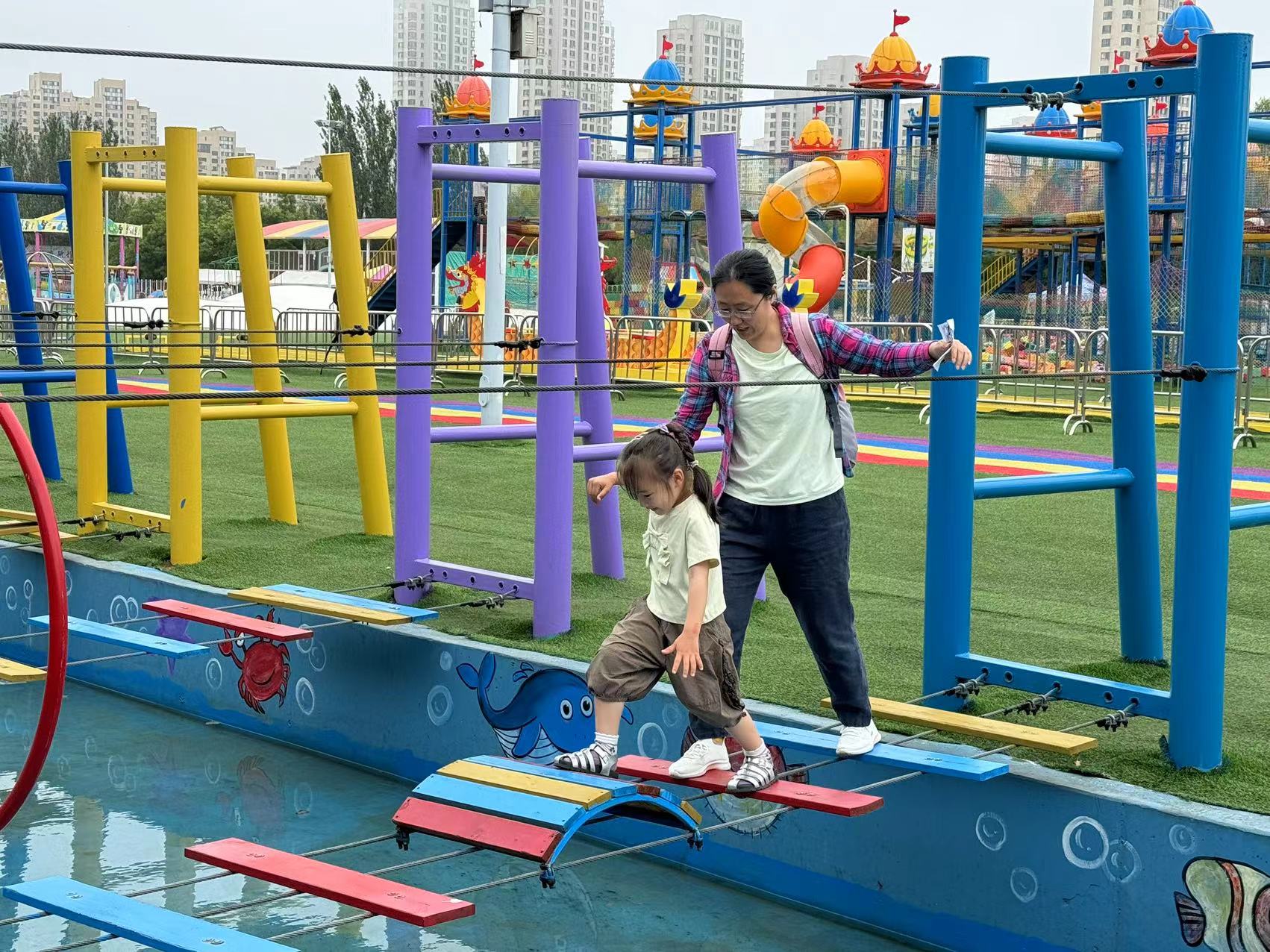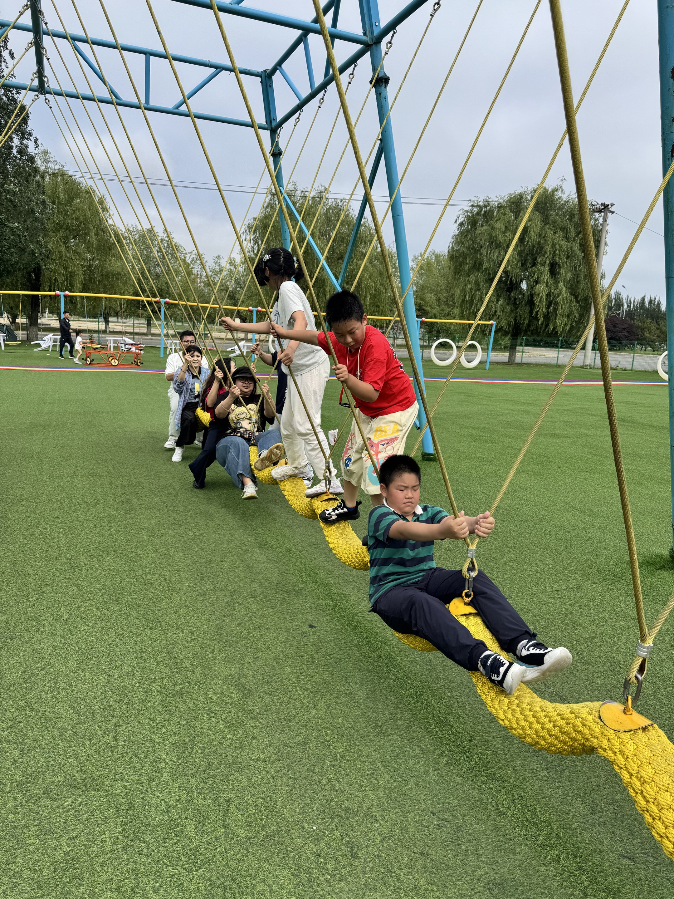闖關(guān)挑戰(zhàn)的余韻未消,大家便迫不及待地開啟了自由暢玩模式。游樂園中,驚險刺激的玻璃棧橋吸引著挑戰(zhàn)者邁開步伐,驚心動魄的攀爬項目激起陣陣喝彩,溫馨舒適的親子項目則流淌著脈脈溫情。無論是緊張刺激后的釋然大笑,還是溫馨互動間的會心微笑,整個樂園都沉浸在輕松愉悅、其樂融融的氛圍里。直至活動尾聲,許多家庭仍流連忘返,不舍離去。
