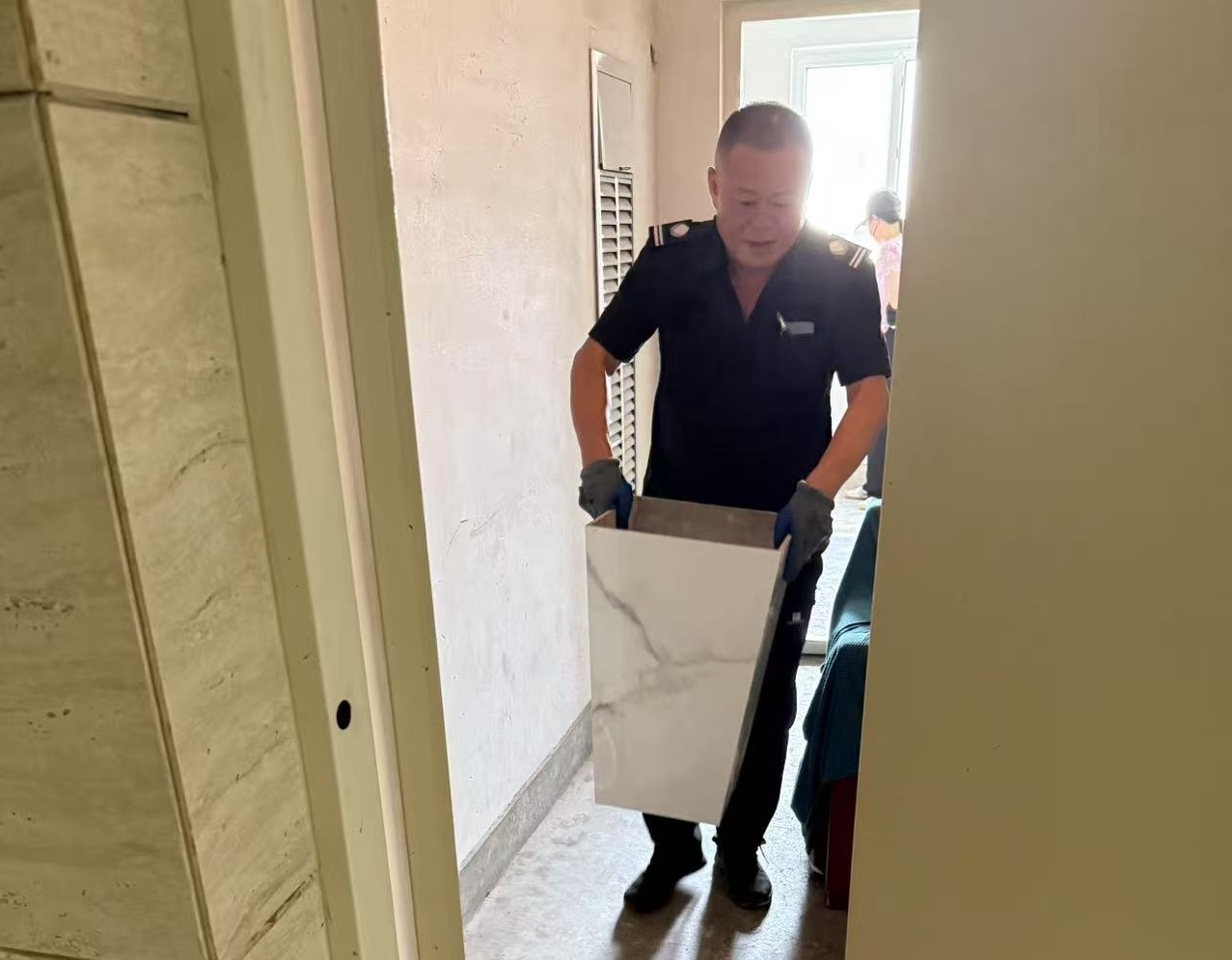 行動(dòng)過程中,團(tuán)隊(duì)分工協(xié)作、高效配合。安管人員憑借良好體能,搬運(yùn)大件家具、建筑廢料等重物,在狹窄通道中謹(jǐn)慎操作,避免對(duì)公共設(shè)施及周邊環(huán)境造成損壞或影響。物管人員則負(fù)責(zé)清理零散雜物,并對(duì)通道進(jìn)行全面排查,不遺漏任何角落。同時(shí),他們積極與業(yè)主溝通,耐心講解消防通道被占用的危害,爭(zhēng)取業(yè)主的理解與支持,引導(dǎo)大家主動(dòng)配合,共同維護(hù)安全居住環(huán)境。